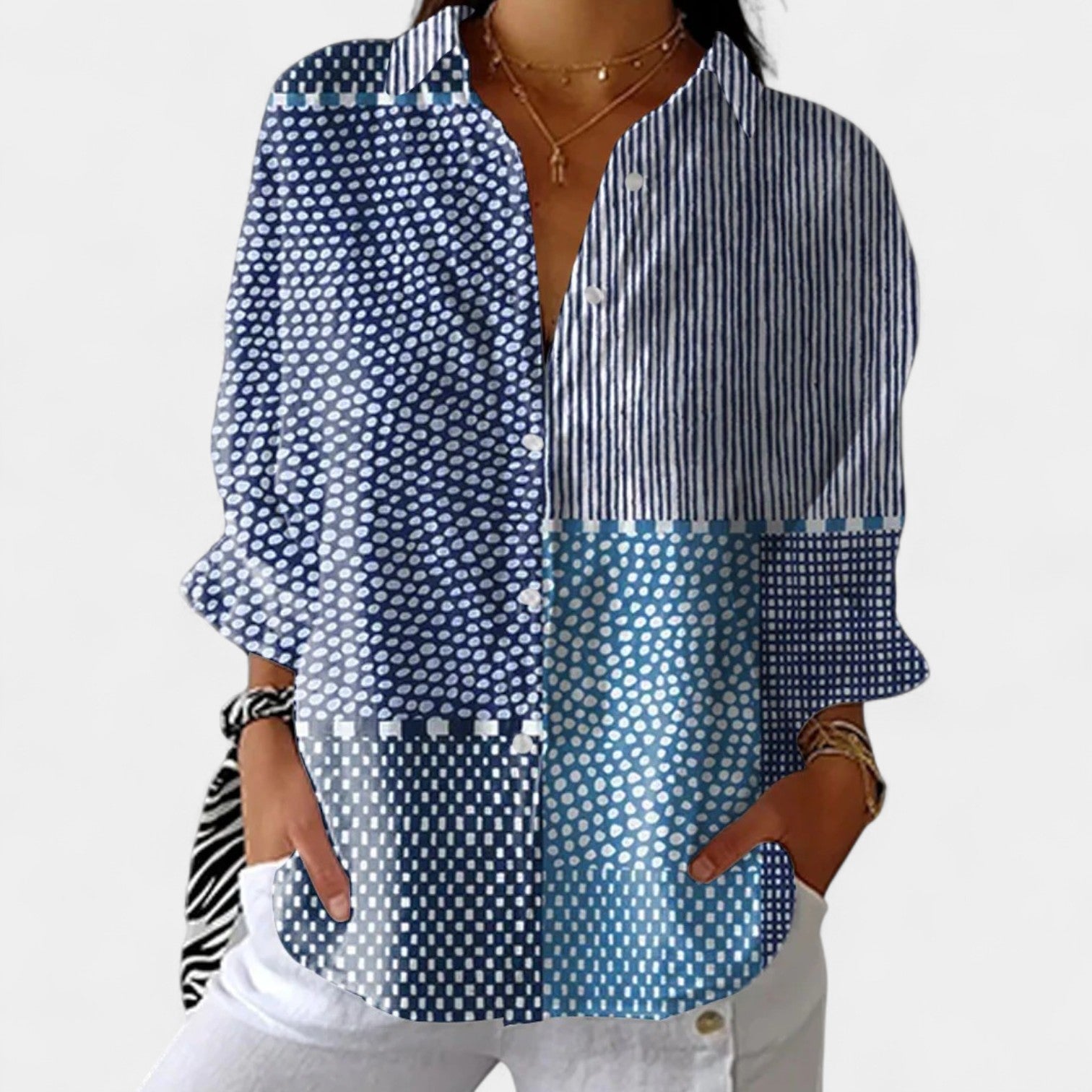 • Удобна свободна кройка – с копчета и дълги ръкави