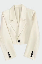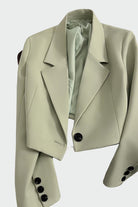 Минималистично късо яке с елегантен дизайн и модерни детайли. Остро очертаната яка и закопчаването отпред добавят динамичен характер, а късата линия го прави идеално за стилни визии. Лесно за носене както за работа, така и за вечерни поводи.