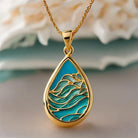 Изживейте магията на вълните с нашето уникално колие, което танцува в светлината на здрача. Плаващият дизайн, емайлиран в наситено и чисто синьо , улавя срещата на водата и вятъра и е вдъхновен от нежните течения на Андаманско море, където морето шепне истории.