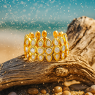 Изработен от позлатена неръждаема стомана , декориран с капковиден кварц в дизайн, вдъхновен от морски флорални мотиви. Хипоалергенен , водоустойчив и издръжлив за ежедневно носене , Serel предлага елегантна и лека естетика. Всеки детайл е ръчно изработен, за да добави уникален характер и сияйна светлина.