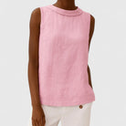 Top Natálie je ideální volbou pro ty, kteří hledají kombinaci pohodlí a jedinečného designu. Tento lehký, lněný top bez rukávů je ideální pro teplé dny a jeho originální, přehnutý límeček dodává celému kousku sofistikovaný a moderní vzhled. Je k dispozici v několika jemných barvách, které se snadno kombinují, a díky volnému střihu je perfektní pro každodenní nošení.