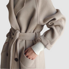 Това палто е перфектната дреха за жени, които искат да съчетаят вечна елегантност с практичност. Дългата му кройка осигурява защита от студа, като същевременно добавя изтънчен вид към облеклото. Минималистичният му дизайн го прави универсален избор както за ежедневието, така и за официални поводи.